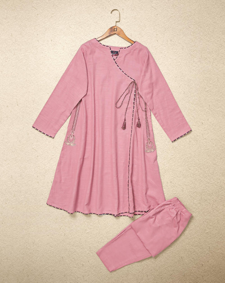 A Frock Enhanced With Lace Attached In Angrakha Style