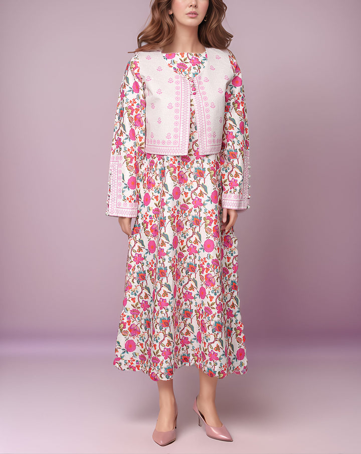 Minimal Printed Sleeve Less Koti Is Added To Compliment The Overall Look