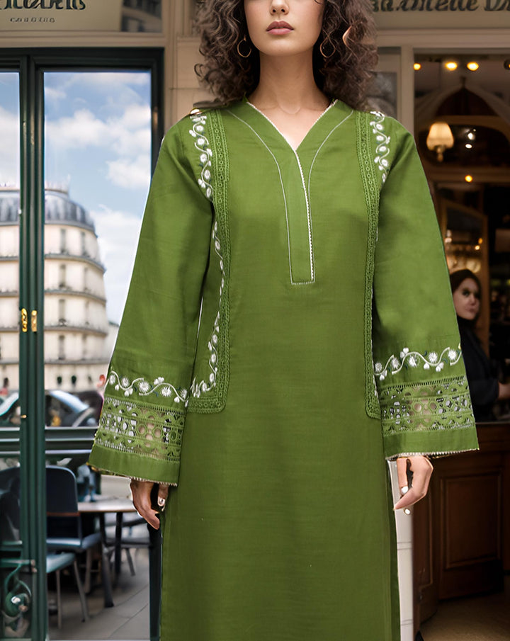 Sleeves Are Enhanced With The Embroidery And Lace Detail