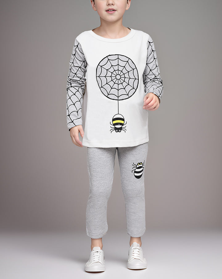 Paired With A Straight Trouser Having Cute Spider Print On Side Of The Trouser