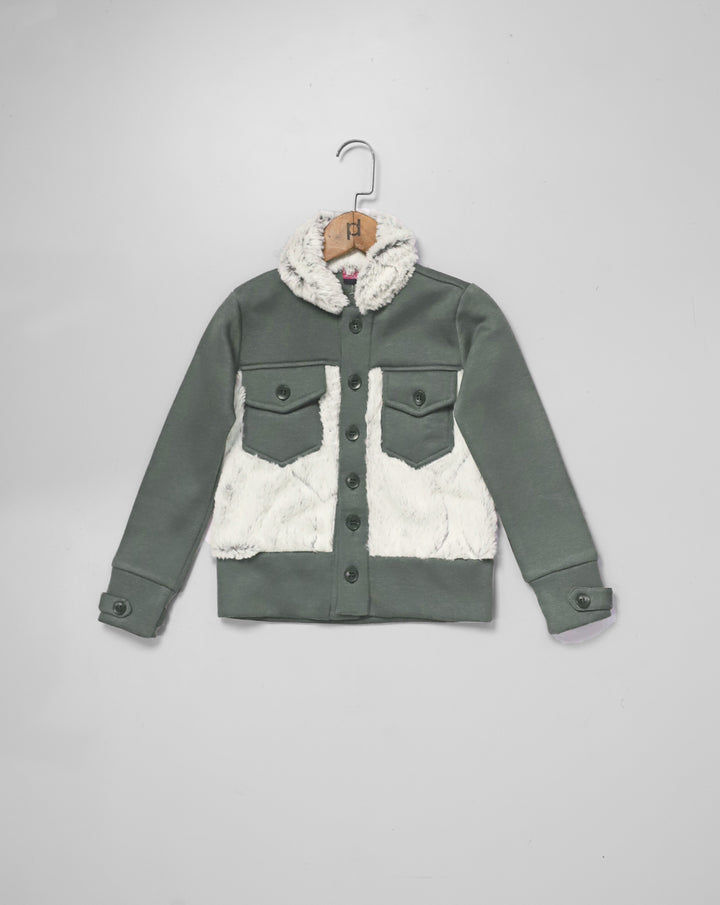 Boys Jacket Features Fur Fabric Contrasting On Collar And Front Body