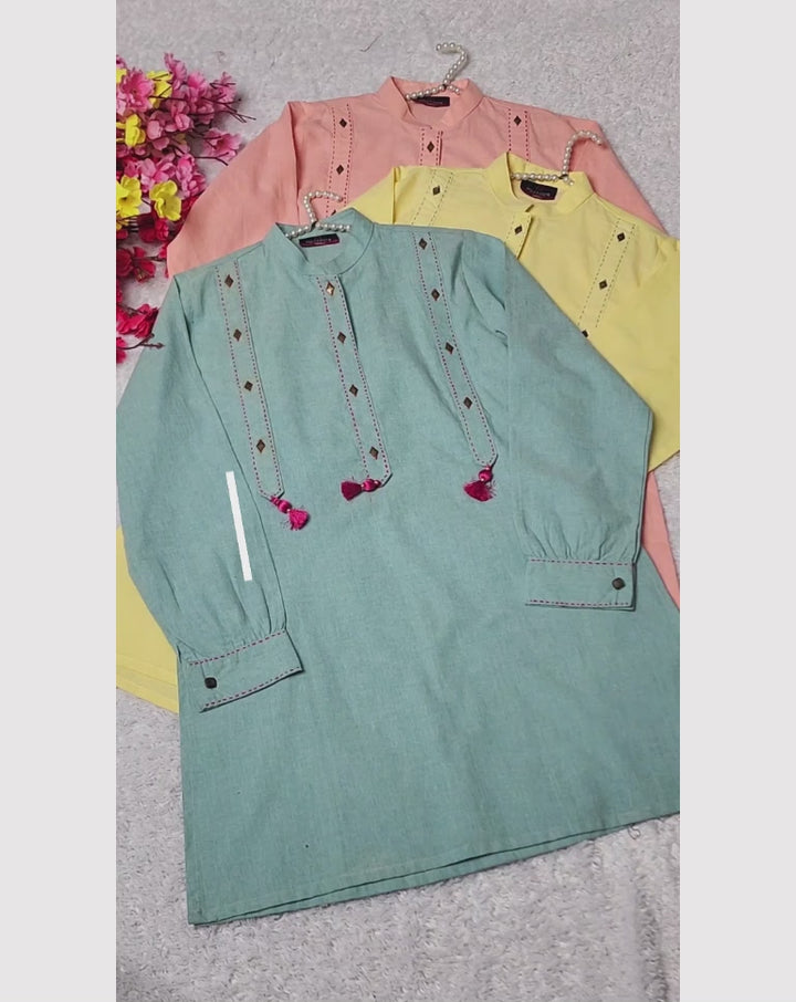 Full Length Sleeves Cuff On The End Having Hand Work As Well