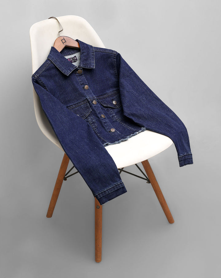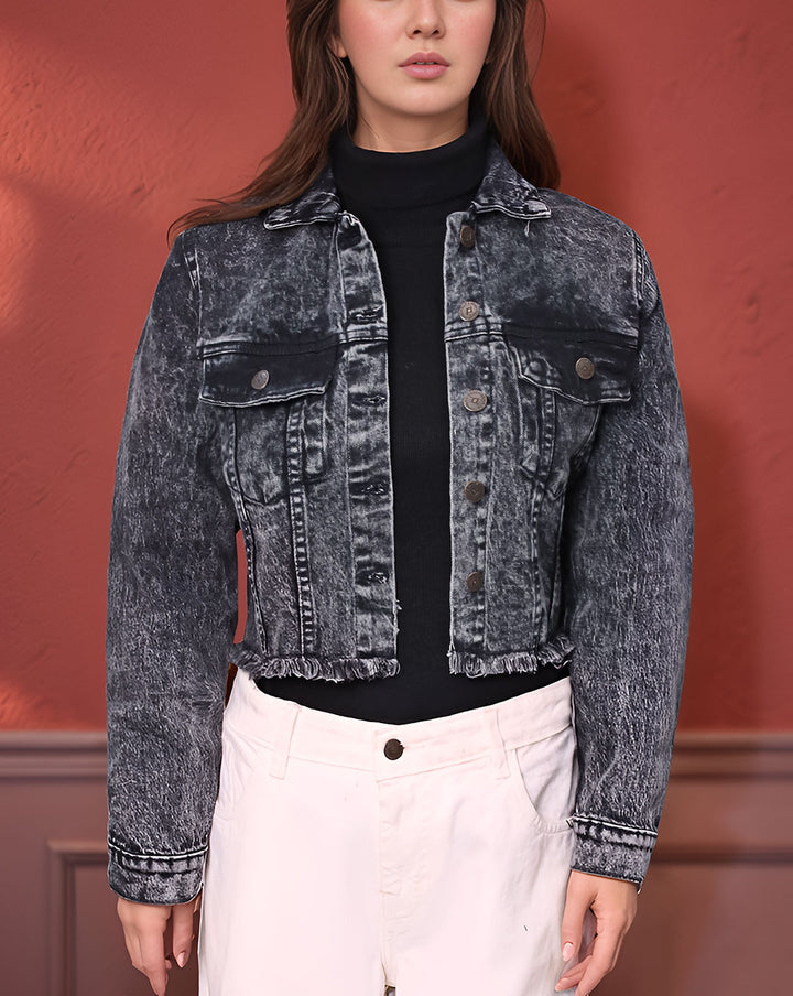FRAYED DENIM CROP JACKET