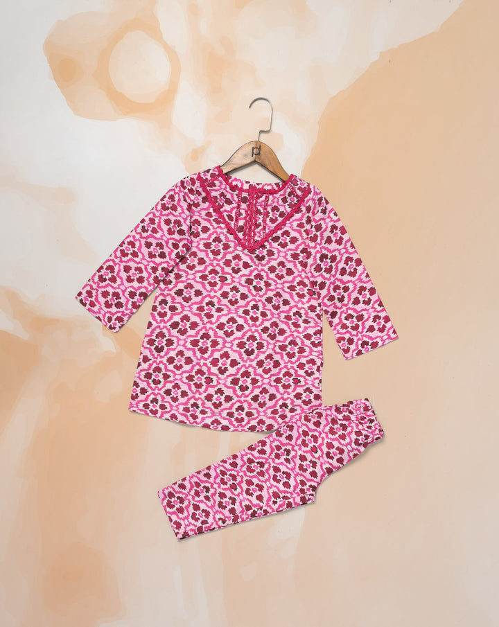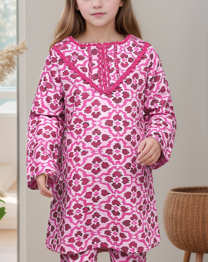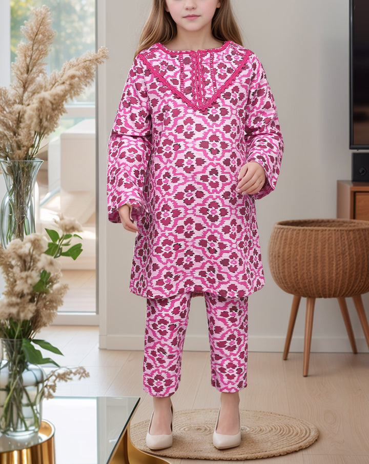 This Toddlers Khaddar 2 Pcs Is Beautifully Enhanced With Delicate Lace Detailing On Neckline