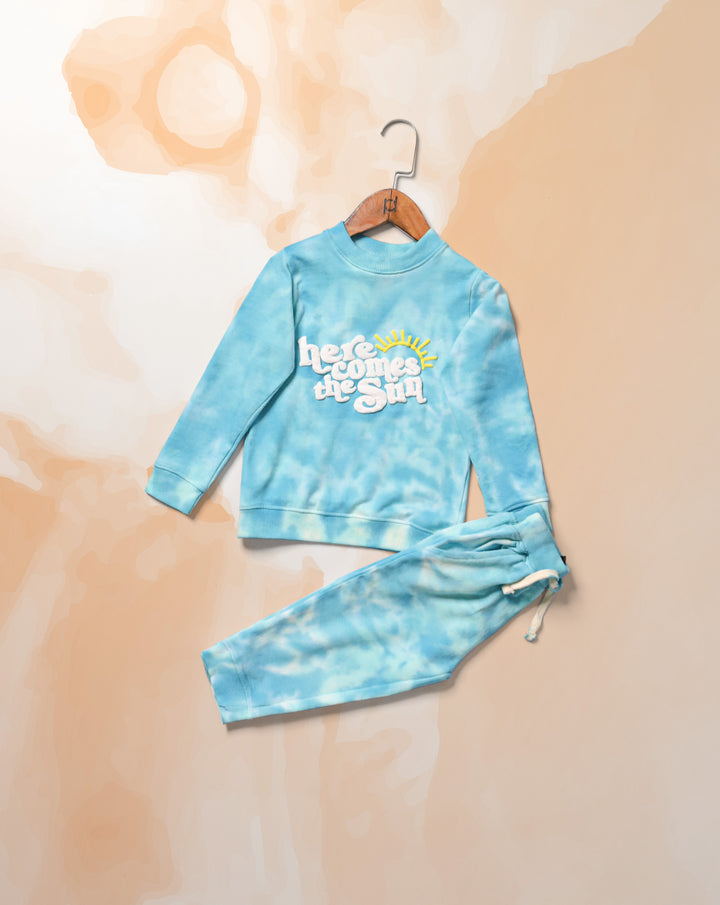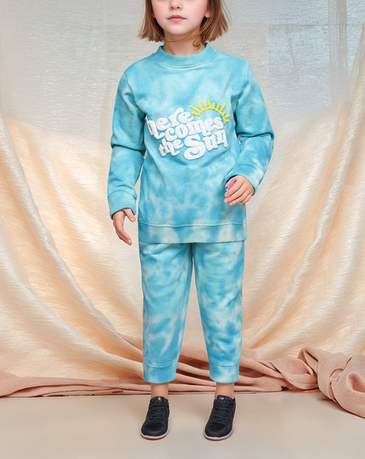 Girls Tie Dye Effect Suit Features Playful Emboss Print On Front Body
