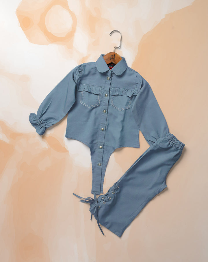 Paired With Loose Trouser Enhanced With Eye Lids With Fabric Laces On Side Seams
