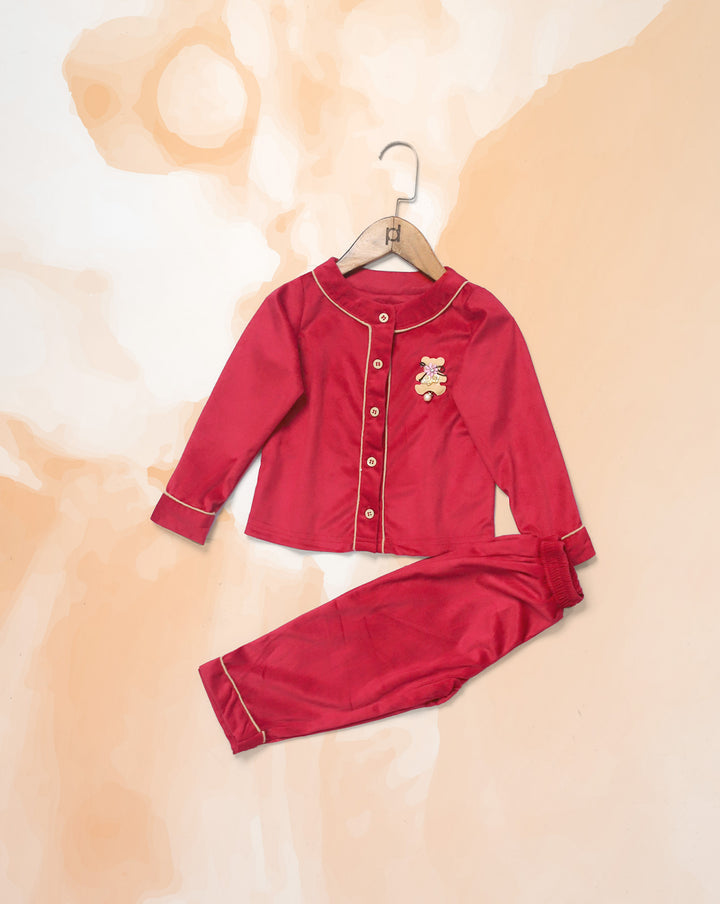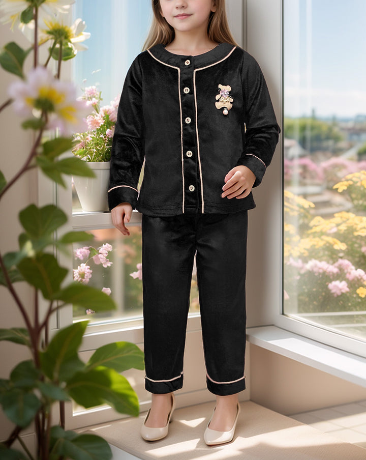 Round Neckline With Placket And Buttons Detailing A Cute Bear Motif