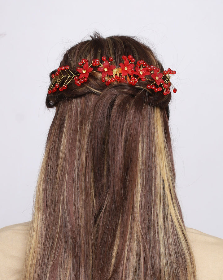 The ultimate blend of beauty and elegance. This handmade comb pin features a luxurious gold pin adorned with delicate gold leaves, vibrant sparkling rhinestones. Upgrade your style with this unique accessory and stand out from the crowd.