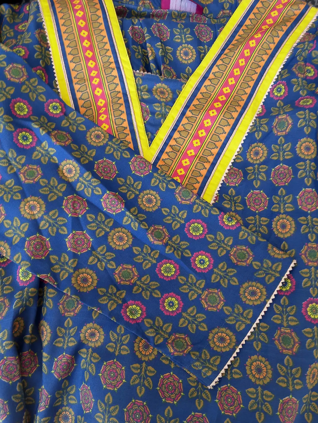 Printed Twinning With Mom Suit Features Overall Print With Contrasting Printed Border Played On Neckline